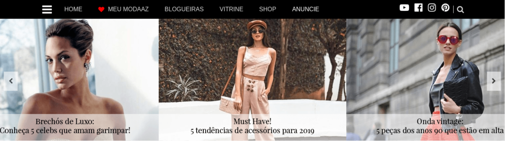 O Top Banner é a sessão inicial do site Modaaz. Nesta área é exibida os principais destaques da plataforma, podendo conter imagens que direcionam para o post ou conteúdo personalizado.
